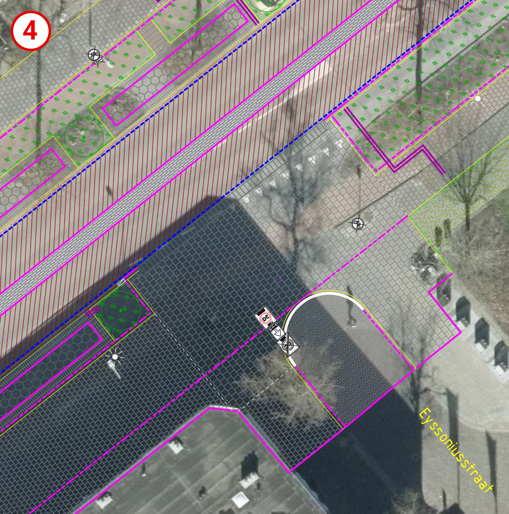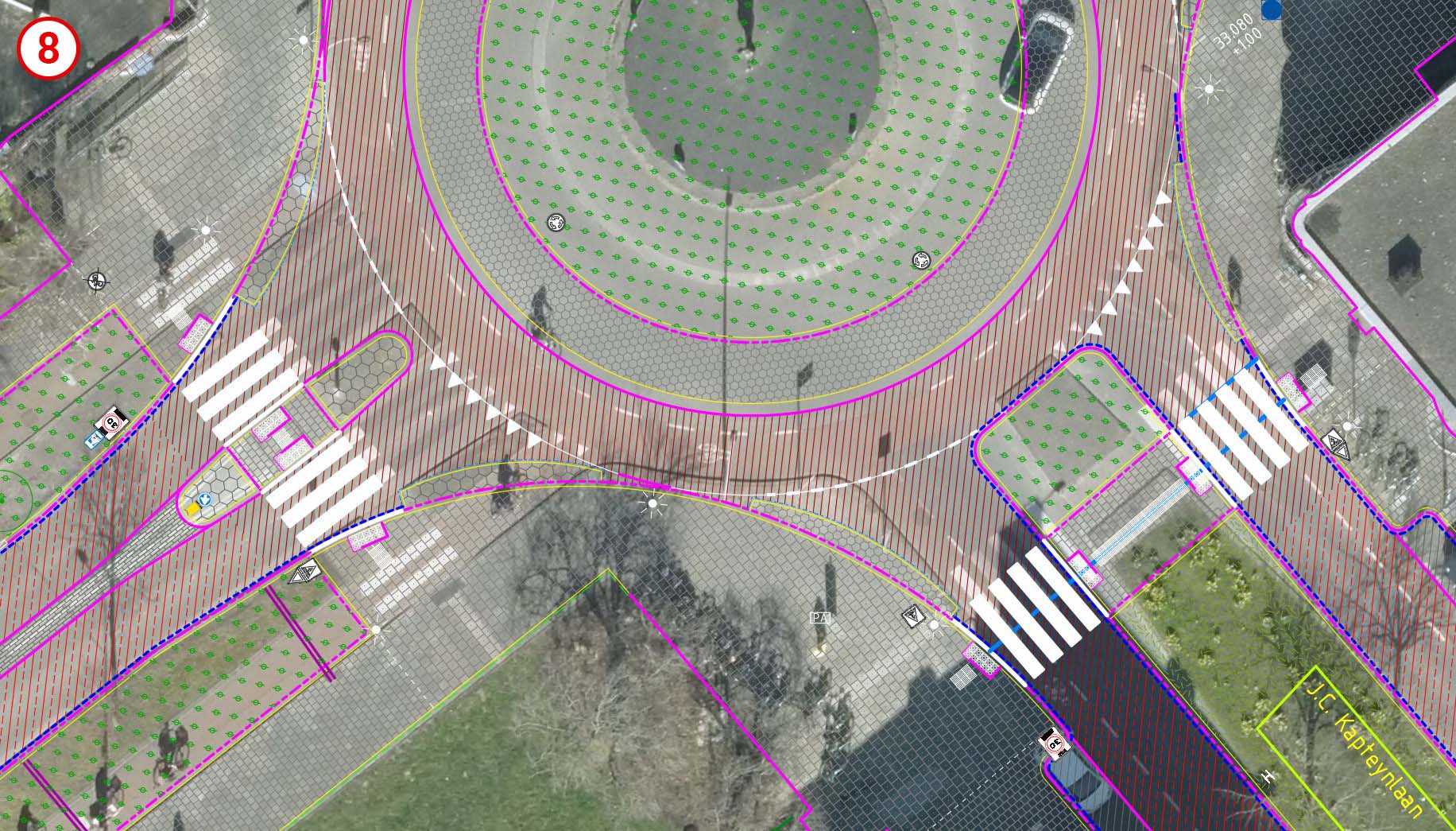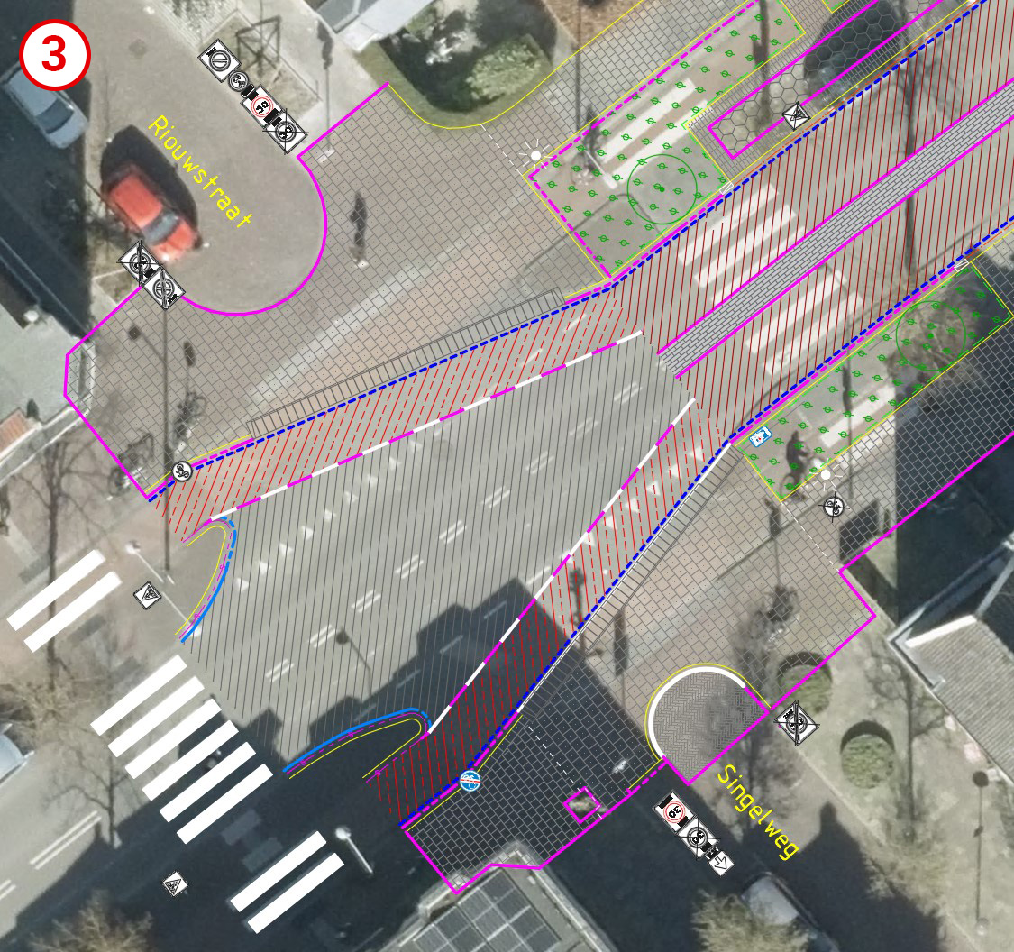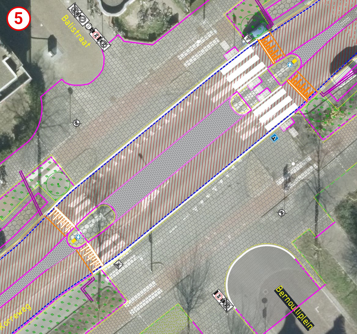 Op het (bajonet)kruispunt Heymanslaan - Korreweg - Floresplein wordt de voorrang in de nieuwe situatie niet meer geregeld met zebrapaden en haaientanden, maar met uitritconstructies. Hierbij moet de voetganger nog steeds worden voorgelaten door het overige verkeer en blijft de Korreweg ook in de voorrang liggen.