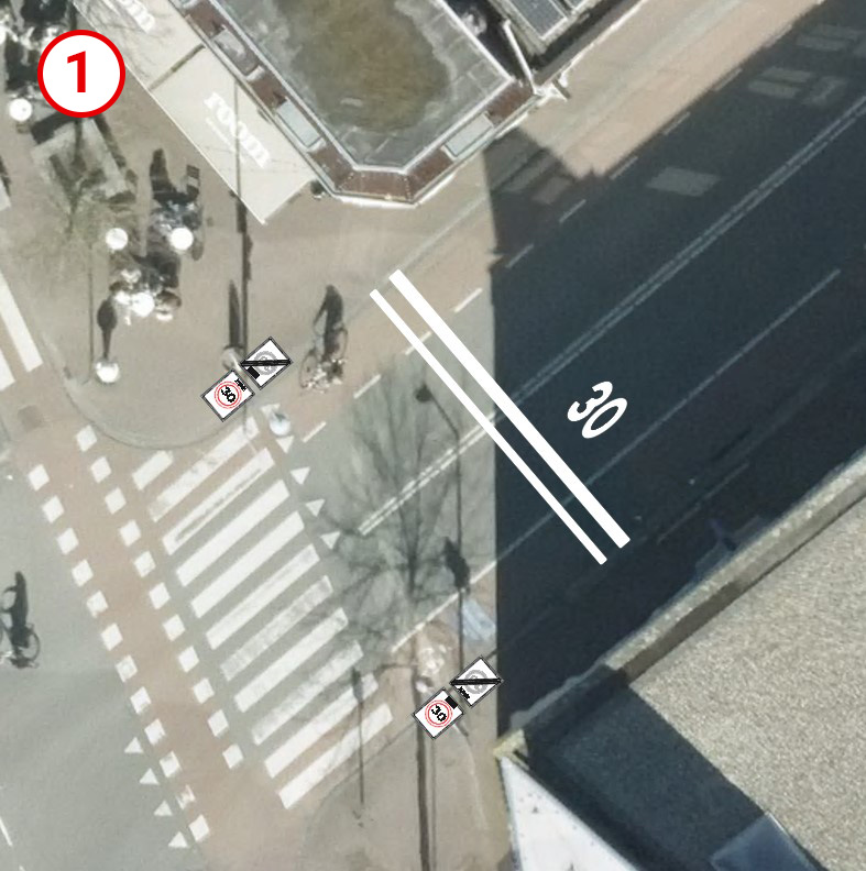 Wij besluiten op grond van bovenvermelde overwegingen tot het plaatsen danwel verwijderen van borden A1 en A2 (30, zonaal) uit bijlage 1 van het Reglement verkeersregels en verkeerstekens 1990 (RVV 1990):