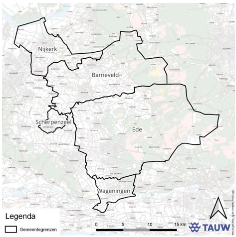 Figuur 3.1 Beheergebied gemeenten Nijkerk, Barneveld, Scherpenzeel, Ede en Wageningen