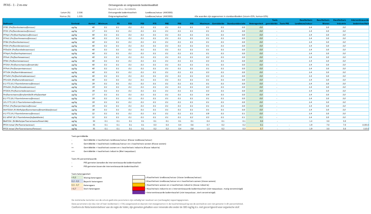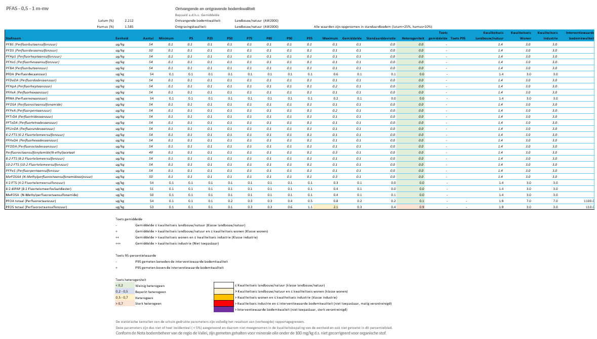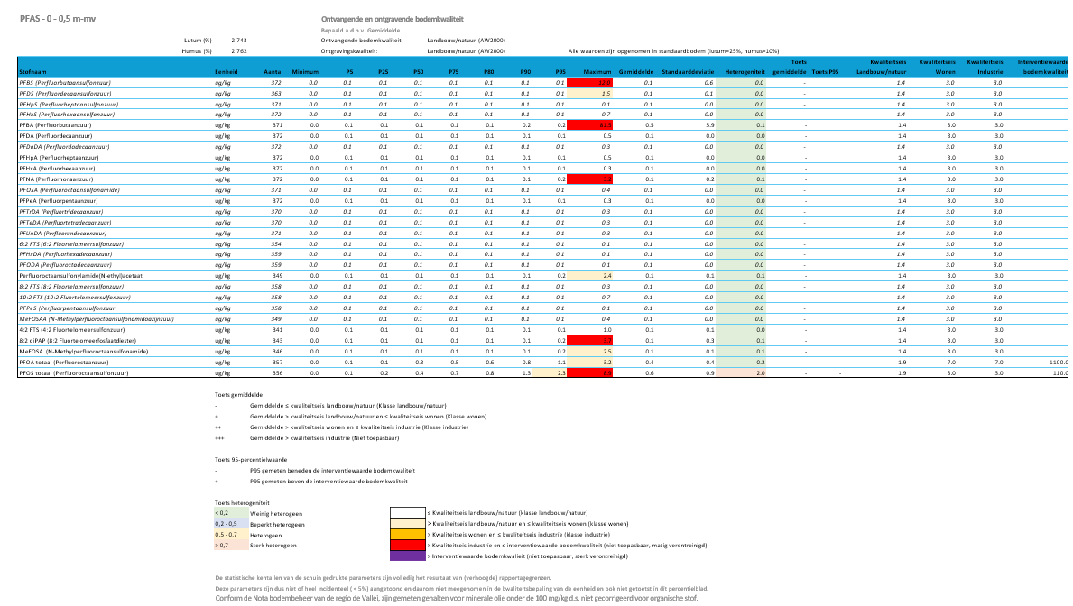 Na het uitvoeren van alle bovenstaande bewerkingen bevatte de dataset circa 100.000 waarnemingen van het standaardpakket bodem. Binnen het PFAS 28 pakket betrof dit circa 14.000 waarnemingen.