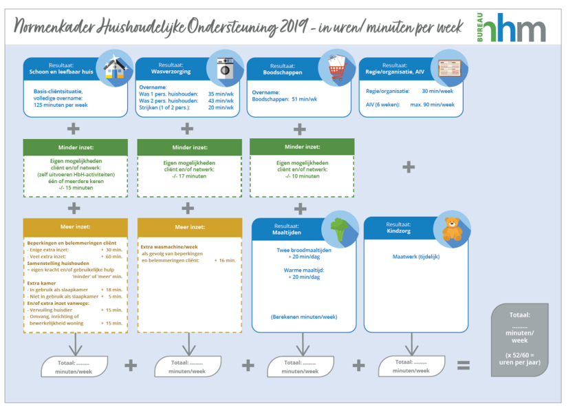 Het normenkader betreft de voor de hulp beschikbare totale tijd. Er is geen sprake van ‘instructietijden’ per activiteit. In ieder huishouden, in iedere situatie, is sprake van net weer wat andere verdelingen van activiteiten en van de tijd die dit vergt per activiteit.