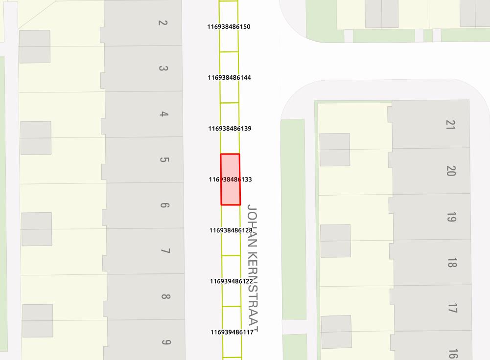 Door het plaatsen van verkeersbord conform model E6 (gehandicaptenparkeerplaats) van Bijlage I van het RVV 1990, voorzien van een onderbord met kenteken X-223-NV en het aanbrengen van ondersteunende markeringen (RVV 1990), in te stellen: een gehandicaptenparkeerplaats ter hoogte van perceel Johan Kernstraat 5 (parkeervaknummer 116938486133) uitsluitend bestemd voor het door vergunninghouder in gebruik zijnde motorvoertuig met het op het onderbord vermelde kentekennummer.