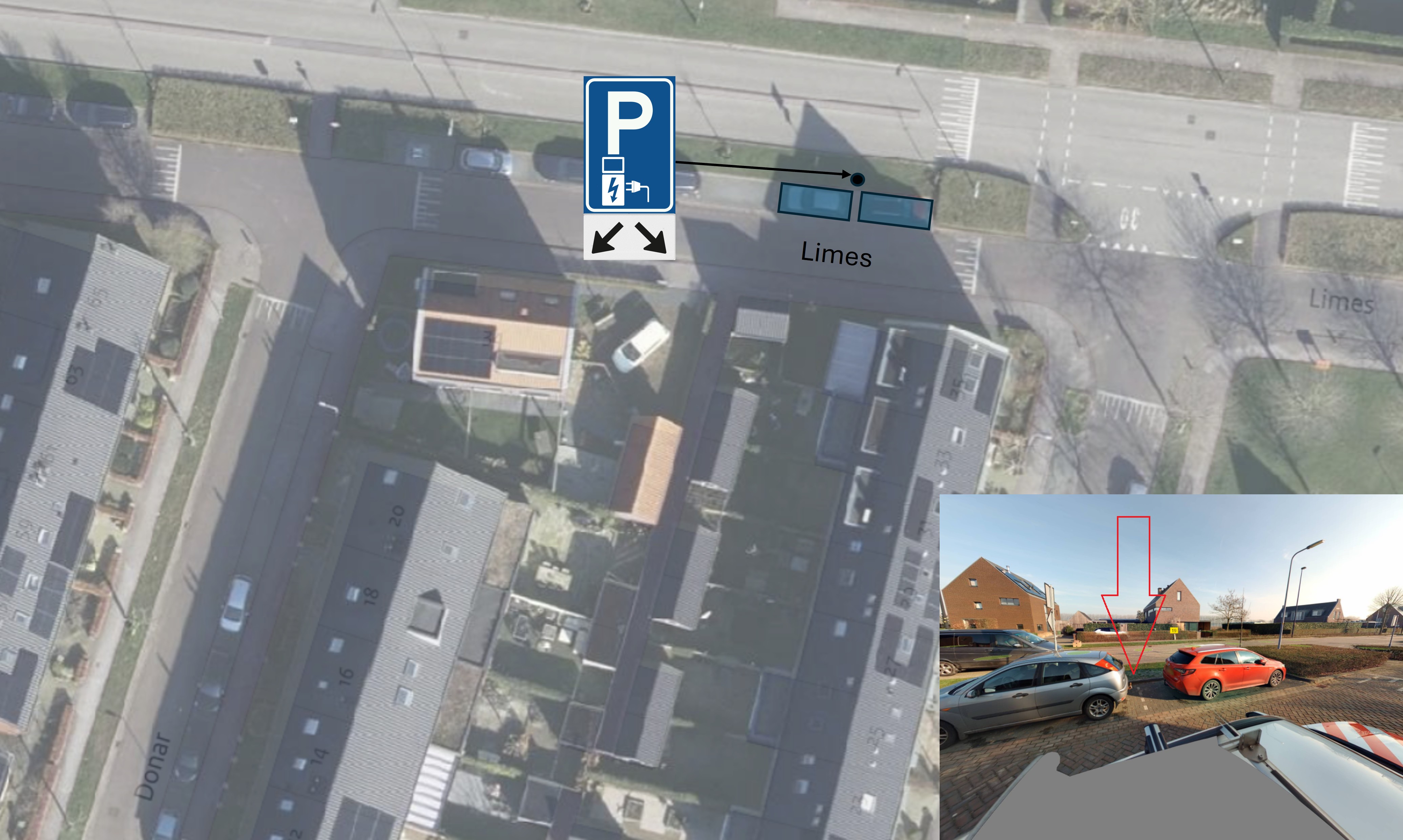 Verkeersbesluit gereserveerde parkeerplaatsen voor opladen elektrische voertuigen aan de Limes nr. 34 te Elst
