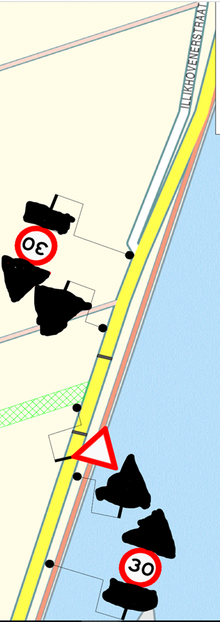 De werkzaamheden ten behoeve van het Grensmaasproject zijn nog in uitvoering. Het werkverkeer wordt waar mogelijk gescheiden van het reguliere wegverkeer. Op enkele punten waar dit verkeer toch kruist zijn veiligheid verhogende maatregelen door middel van borden nodig.