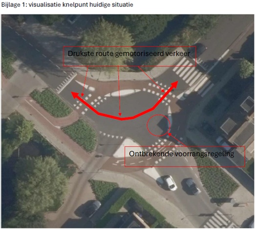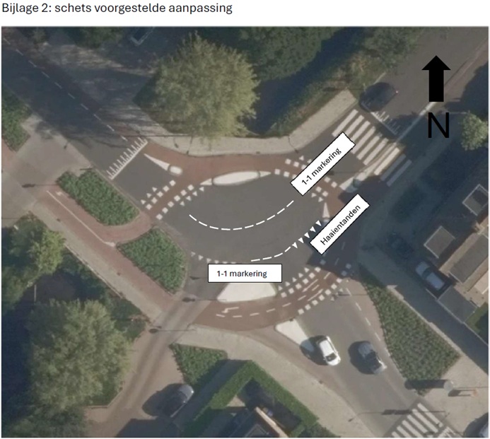 dat de gemeente deze kruising omstreeks 2023 opnieuw heeft ingericht. Hierbij is een zogenaamde ‘fietsrotonde’ gerealiseerd, waarbij fietsers voorrang hebben. Voor het overige verkeer is na herinrichting sprake van een gelijkwaardige kruising, waar in het verleden op de zuidoostelijke aansluiting (Prinses Margrietlaan) een inritconstructie lag;