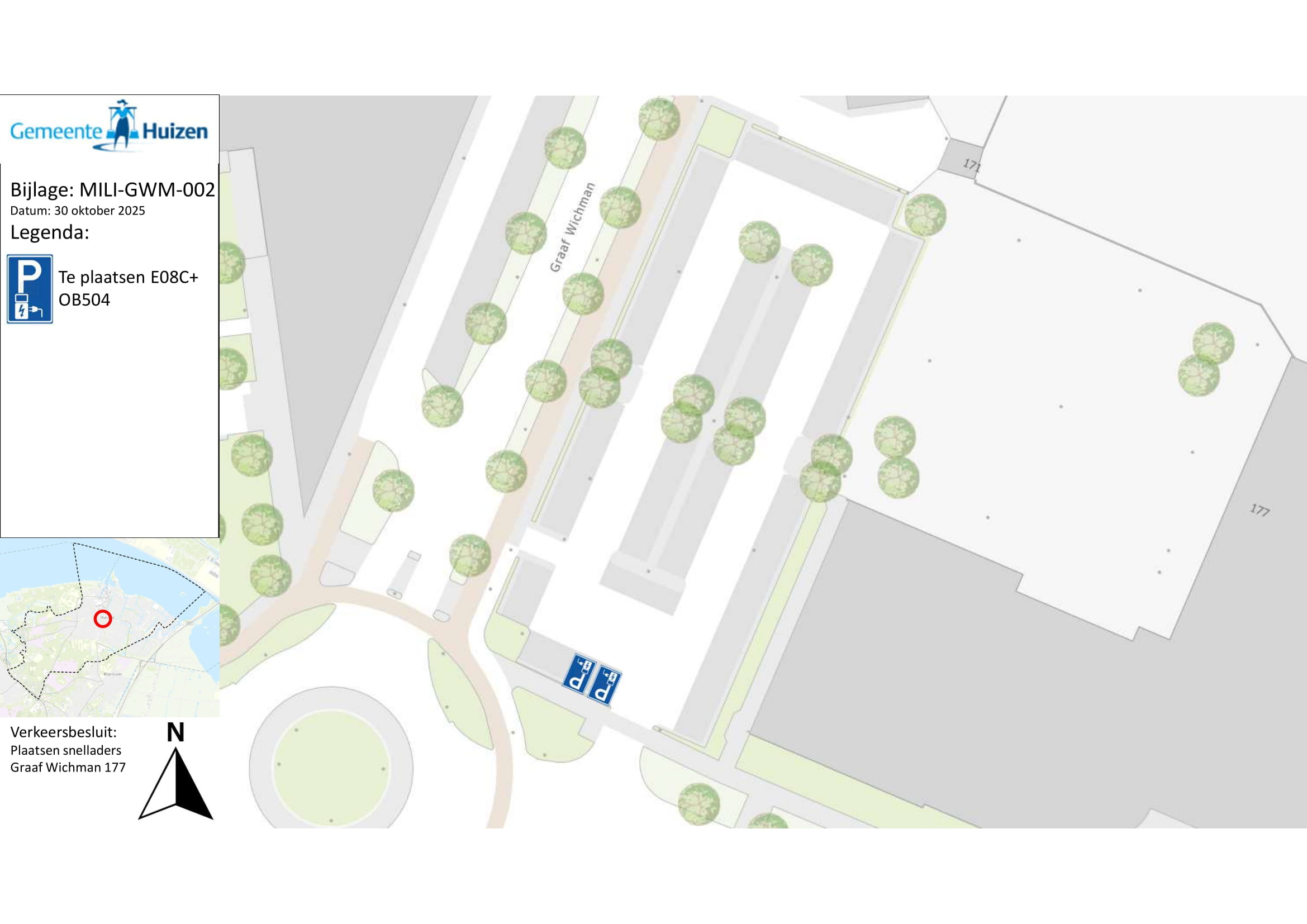 Verkeersbesluit plaatsen snelladers voor het laden van elektrische voertuigen nabij Graaf Wichman 177 te Huizen