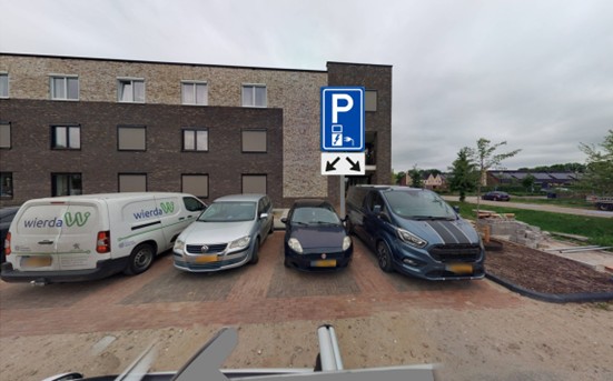 1. Door middel van het plaatsen van het bord E8c van bijlage 1 van het Reglement Verkeersregels en Verkeerstekens 1990 met een onderbord (OB504) die met twee pijlen aangeeft op welke vakken het betrekking heeft, twee parkeerplaatsen te reserveren ten behoeve van het opladen van elektrische voertuigen op de volgende locatie:
