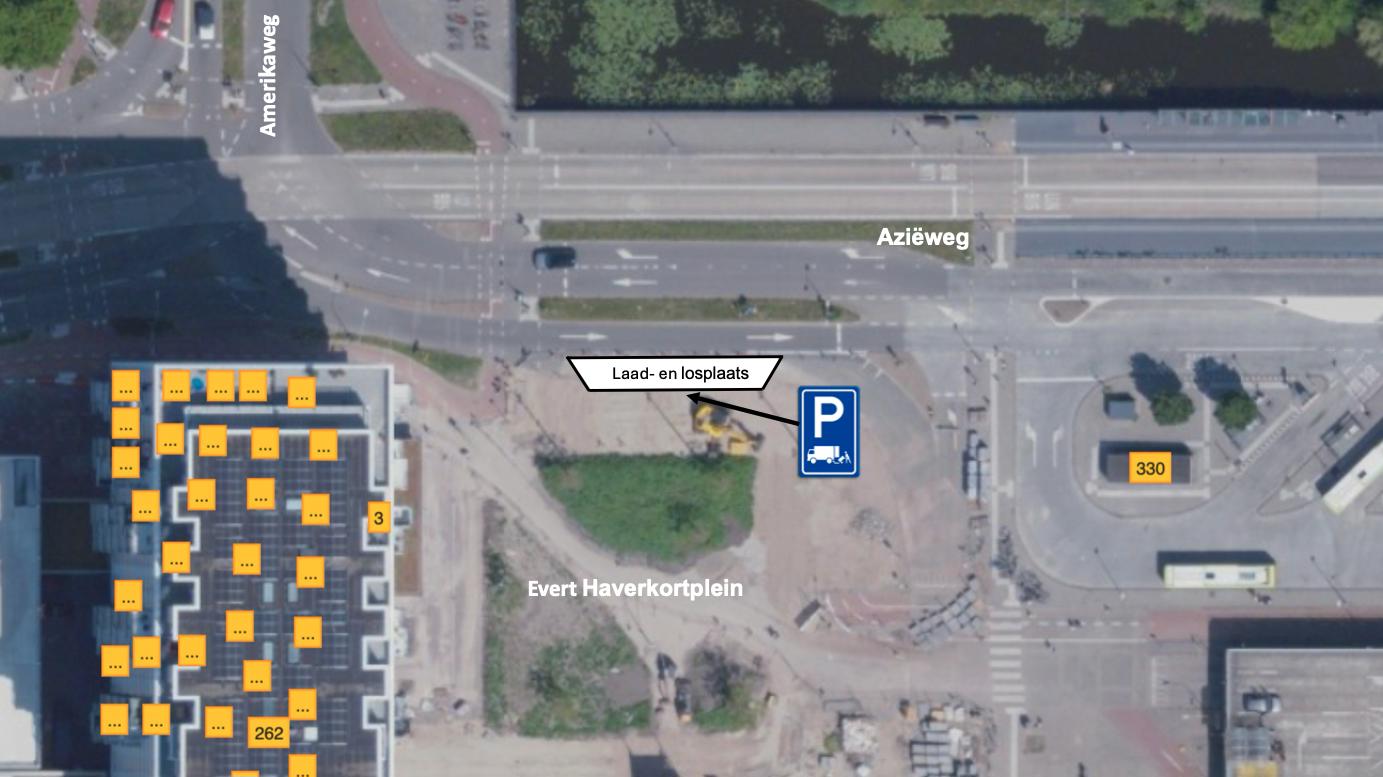dat in de planvorming er een gelegenheid voor het onmiddellijk laden en lossen van goederen is ingericht op de Aziëweg, ten noorden van het Evert Haverkortplein en nabij de kruising met de Amerikaweg;