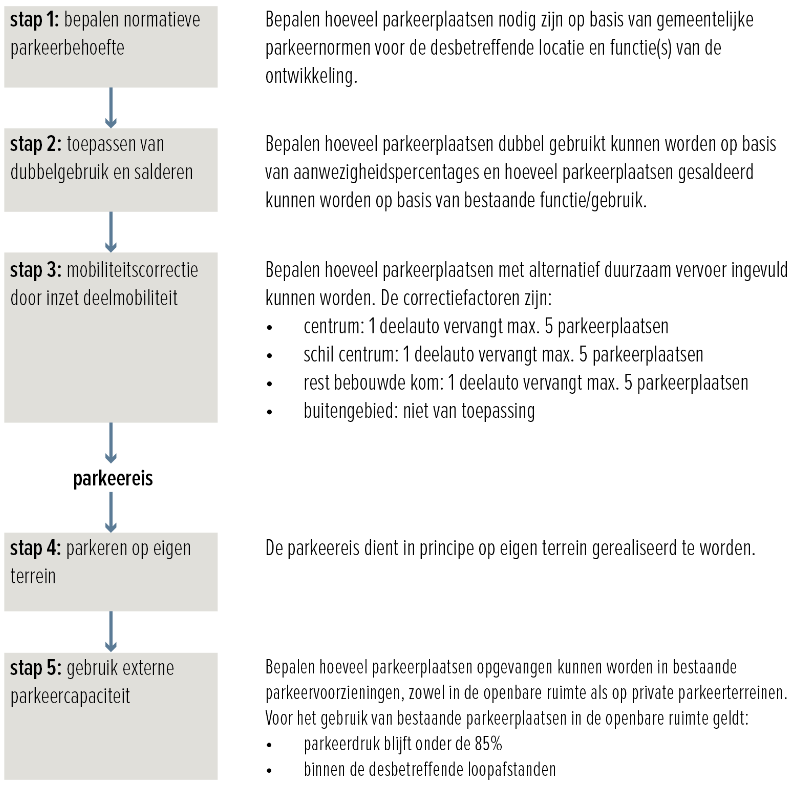 Onderstaand schema toont de rekenmethode om te komen tot de parkeerbalans voor een ruimtelijke ontwikkeling.