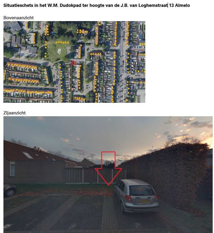 Er is een plankaart met voorgenomen locaties voor een openbare laadpaal. De locatie in het W.M. Dudokpad ter hoogte van de J.B. van Loghemstraat 13 in Almelo staat niet op de plankaart. Om aan de eis te voldoen dat de laadpaal op circa 250 meter afstand van de aanvrager moet staan, hebben wij een nieuwe locatie toegevoegd aan de plankaart.Wij hebben hier rekening gehouden met het openbare karakter, de parkeerdruk en de zicht- en vindbaarheid.
