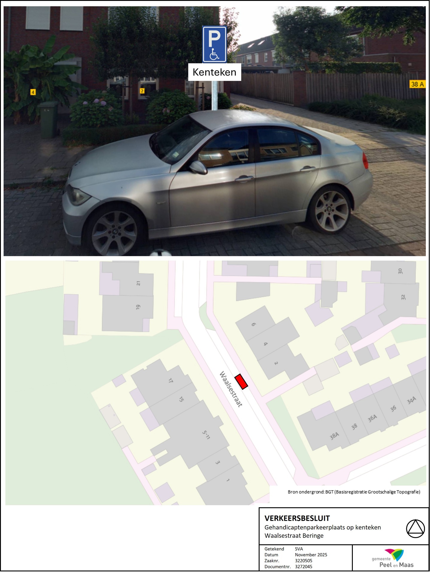 Gemeente Peel en Maas - Verkeersbesluit – Gehandicaptenparkeerplaats op kenteken – Waalsestraat Beringe