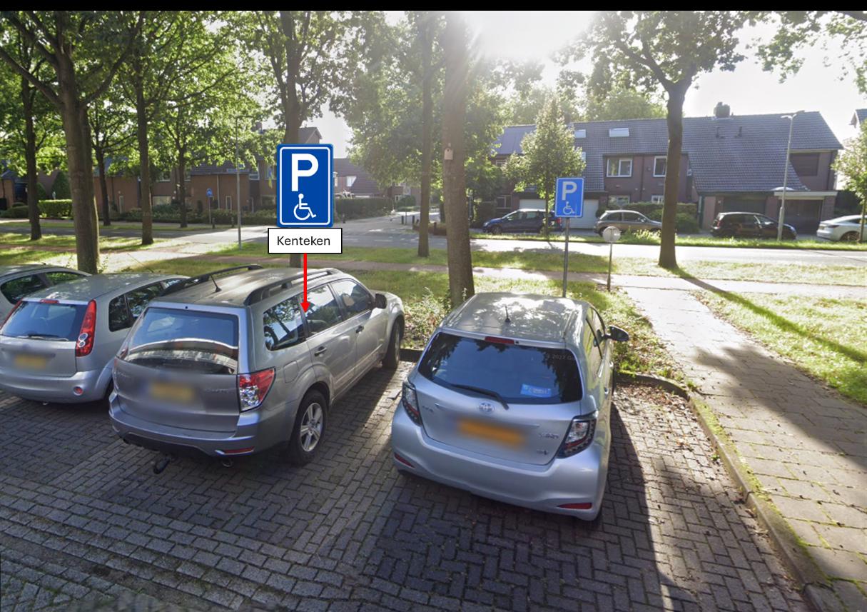 • een gereserveerde gehandicaptenparkeerplaats kan worden gerealiseerd door het plaatsen van het bord E6 ‘gehandicaptenparkeerplaats’ en onderbord met kenteken van de aanvrager;
