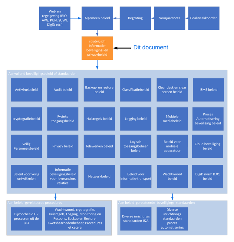 Deze beleidsnota beschrijft op strategisch niveau het informatiebeveiligings- en privacy beleid. Dit beleid zal worden vertaald in aanvullend beleid en tactische en operationele richtlijnen en maatregelen. De daaruit voortkomende werkzaamheden worden uitgewerkt in het jaarlijks te schrijven ‘Gemeentelijk Informatiebeveiligings- en privacy plan’ (afdelingsplannen).