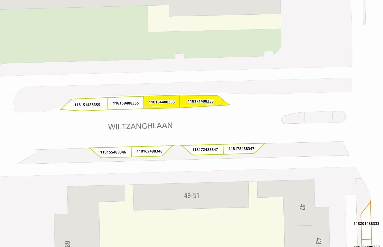 Twee parkeerplaatsen ter hoogte van perceel Wiltzanghlaan 51 (parkeervaknummers 118171488355 en 118164488355) aan te wijzen voor het opladen van elektrische voertuigen door het plaatsen van een bord conform model E8c van Bijlage I van het RVV 1990, gecombineerd met onderbord OB504 met daarop afgebeeld twee pijlen op een hoek van 45° (RVV 1990).