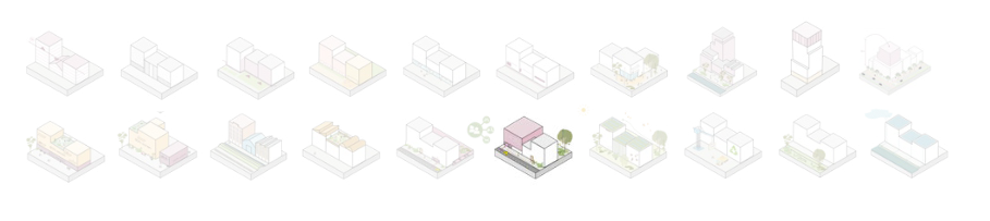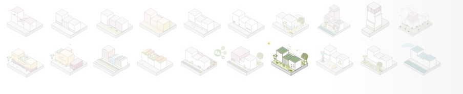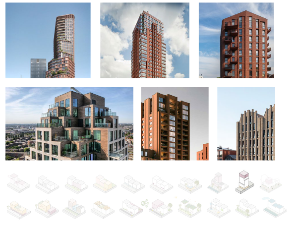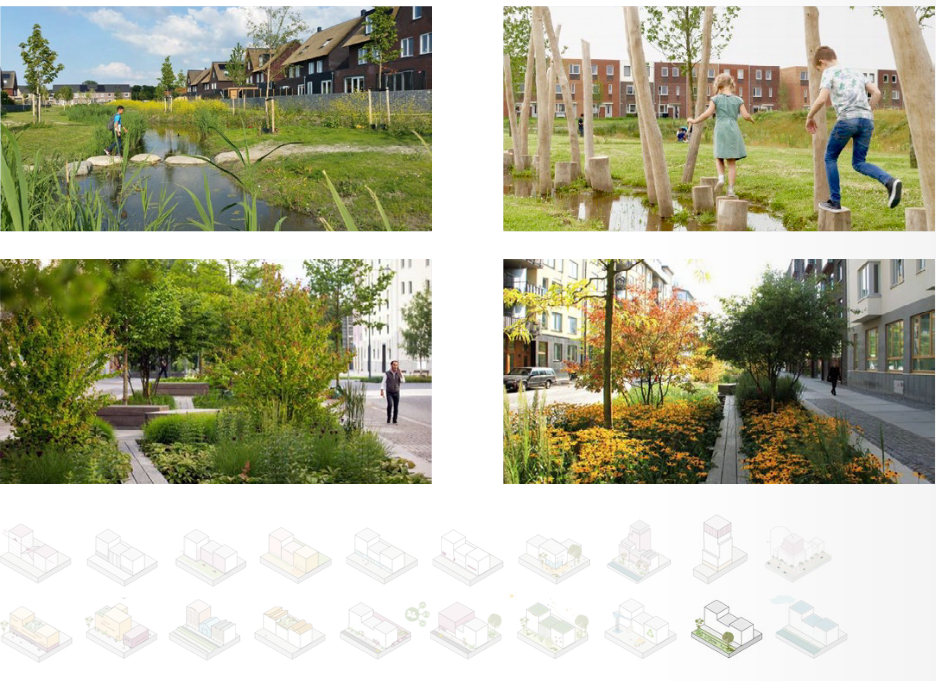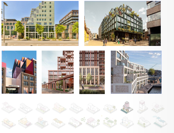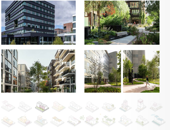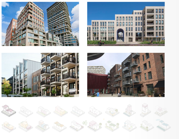 Deze substructuur die de verschillende ontwikkelclusters aan elkaar verbindt zorgt ook voor meer vrijheid wat betreft de invulling van de clusters. In Nieuw Oudorp wordt ruimte gemaakt voor een rijke diversiteit aan stedenbouwkundige en architectonische typologieën. Denk hierbij aan gesloten bouwblokken, open blokken met verhoogde groene hofjes, hybride stadsblokken, en ensembles van gebouwen in een landschappelijke setting. Deze mix van typologieën draagt bij aan een gelaagde, dynamische omgeving waarin wonen, werken, en recreëren op een vanzelfsprekende manier met elkaar omgaan.