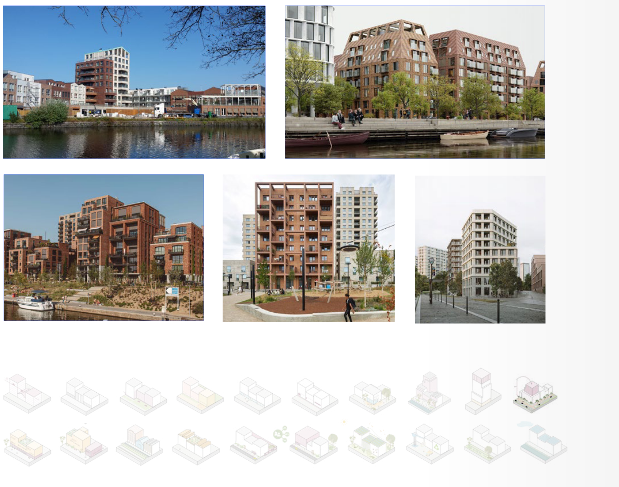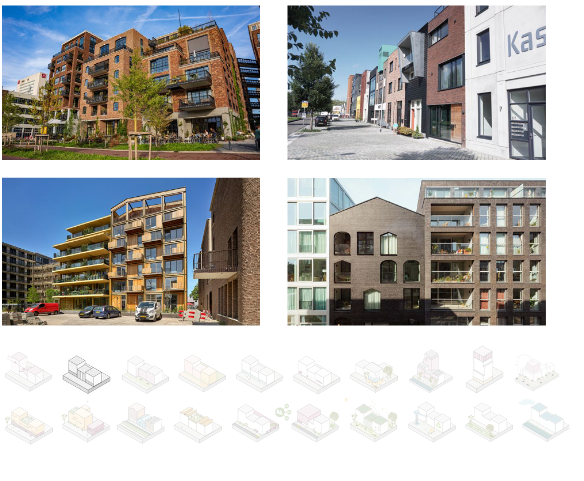 We zien in de nieuwe wijk het verleden als werk- en maakgebied terug in de keuze voor robuuste en stevige bebouwing met een stoer karakter, echter krijgen deze een warme uitstraling dankzij het gebruik van warme baksteentinten en oog voor de menselijke maat in de opbouw van de volumes. De juiste geleding, proportie en massaopbouw speelt daarbij een belangrijke rol en zorgt voor een vriendelijke en uitnodigende sfeer.