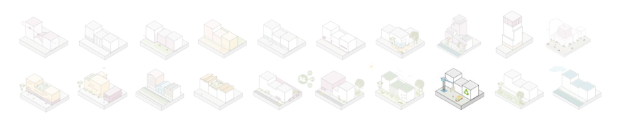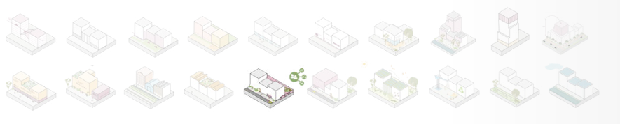 Daarnaast wordt ook ruimte gemaakt voor intimiteit en staat de gebruiker centraal. Kleinere geborgen ruimtes en groene oases van rust schuilen achter de ruwe, stoere buitenkanten en worden bewoners en bezoekers uitgenodigd om deze te ontdekken en verkennen.