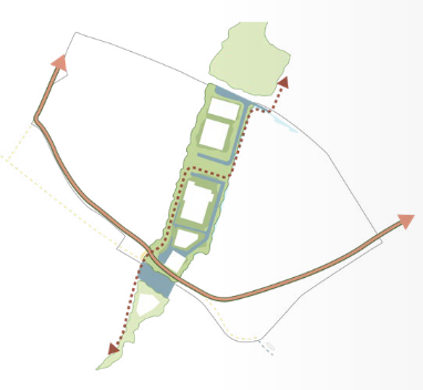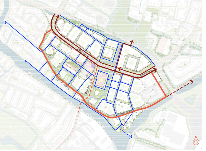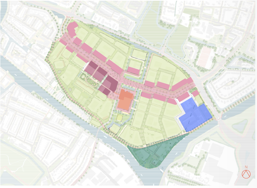 Het ruimtelijk raamwerk bestaat uit stedenbouwkundige dragers en levendige plekken en vormt de ruggengraat van het gebied. De verbonden stadserven binnen de ontwikkelclusters geven invulling aan dit raamwerk en vormen samen een substructuur van paden, geborgen semi-openbare ruimten die mensen uitnodigen om te verkennen en te verblijven.