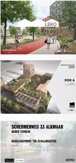 De transformatiegebieden binnen het Alkmaars Kanaal zijn onderdeel van de opgave: Grootschalige Gebieds Ontwikkeling (vanaf nu GGO). De ontwikkelingen binnen GGO vragen om een duurzame en kwalitatieve begeleiding van de planvorming. Om de stedenbouwkundige en architectonische kwaliteit te kunnen waarborgen met behoud van flexibiliteit en ruimte voor het goede gesprek wordt een werkwijze met een supervisor en supervisieteam door vaststelling van dit Ontwikkelkader onderdeel van het planproces. Door het instellen van een supervisieteam kan er meer flexibiliteit worden geïntroduceerd in de Ontwikkelkaders, terwijl tegelijkertijd de controle over de kwaliteit behouden blijft. Een bijkomend voordeel is de mogelijkheid om in te spelen op toekomstige veranderingen. Het supervisieteam zal adviseren op de stedenbouwkundige en landschappelijke inpassing van bouwplannen. Wanneer de stedenbouwkundige setting concreet is geworden en er begonnen wordt met het opstellen van een kavelpaspoort en beeldkwaliteitsplan voor de kavel/het cluster zullen er ook specialisten worden aangehaakt met specifieke kennis van duurzaam/circulair bouwen, natuurinclusief bouwen en klimaatadaptief bouwen. Door de kennis van het (deel)gebied en de stad levert het team een waardevolle input voor de ontwikkelaar maar wordt ook de “couleur locale” gewaarborgd. Het doel is naast het toetsen van de kwalitatieve uitvoering van het Ontwikkelkader om zowel de initiatiefnemer als de architect te enthousiasmeren en te begeleiden naar een hoger kwaliteitsniveau. We werken vanuit een positieve boodschap gezamenlijk aan een grote en belangrijke opgave voor Alkmaar. We moeten naderhand allemaal trots terugkijken op het resultaat en het proces.