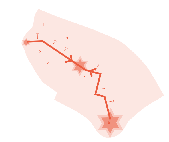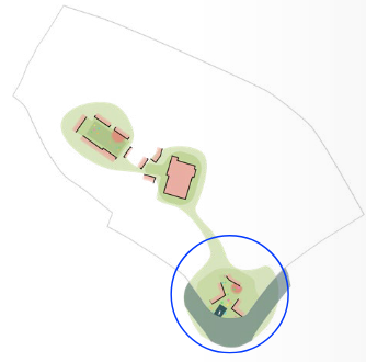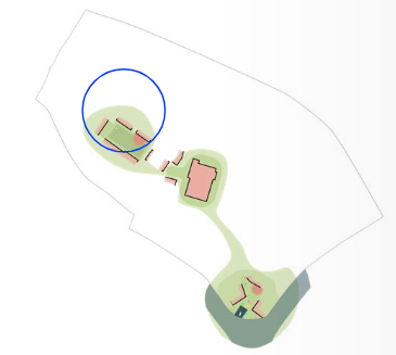 De hoeken van de gebouwen zijn belangrijke oriëntatiepunten in het gebied. Op deze strategische plek komen routes samen, waardoor de hoeken ook vanuit verschillende plekken zichtbaar zijn.