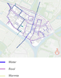 Op de kaarten is te zien dat de ondergrondse infrastructuur sterk gekoppeld is aan de bovengrondse infrastructuur. Wanneer het gebied getransformeerd gaat worden, is vergroening van de straatprofielen nodig. De ondergrondse infrastructuur kan het vergroenen van de straatprofielen in de weg staan.