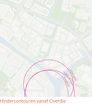 Vanuit Overdie zijn er ook hindercontouren die van invloed zijn op de Nieuw Oudorp.