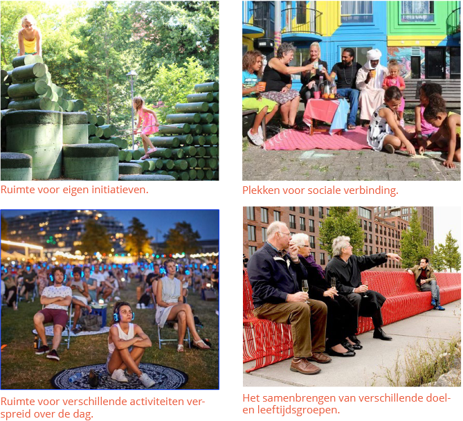 Er is volop participatie denkbaar in de programmering van de grotere openbare ruimte en mensen voelen zich vrij om hun directe omgeving te claimen en te onderhouden. Hier wordt de menselijke touch van de wijk zichtbaar.
