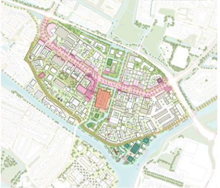 Ambitie is om gebieden te transformeren naar hoogwaardige woon-en werkgebieden met ruimte voor extra voorzieningen en groen.