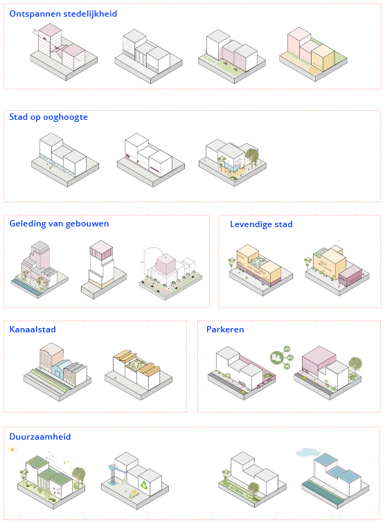 De spelregels voor de ontwikkelclusters zijn in hoofdstuk 5 geformuleerd. In dit hoofdstuk zijn de richtlijnen en uitgangspunten van de initiatieven vastgelegd. Het mogelijke programma is uitgewerkt in hoofdstuk 6 en de beoogde beeldkwaliteit is uitgeschreven in hoofdstuk 7.