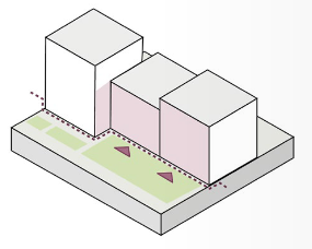 De overgang van de woningen naar de straat dient vormgegeven te worden met een buffer in de vorm van een kleine voortuin of Delftse stoep. Dit zal zorgen voor privacy in de woningen en draagt bij aan de persoonlijke expressie en herkenbaarheid in de straat.