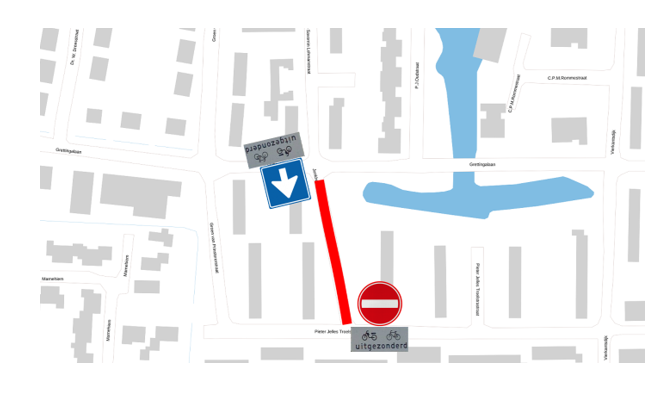 • op de aangelegen Pieter Jelles Troelstrastraat reeds eenrichtingsverkeer is ingesteld;
