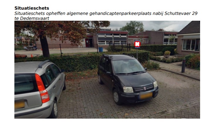-nabij Schuttevaer 29 te Dedemsvaart een algemene gehandicaptenparkeerplaats aanwezig is;