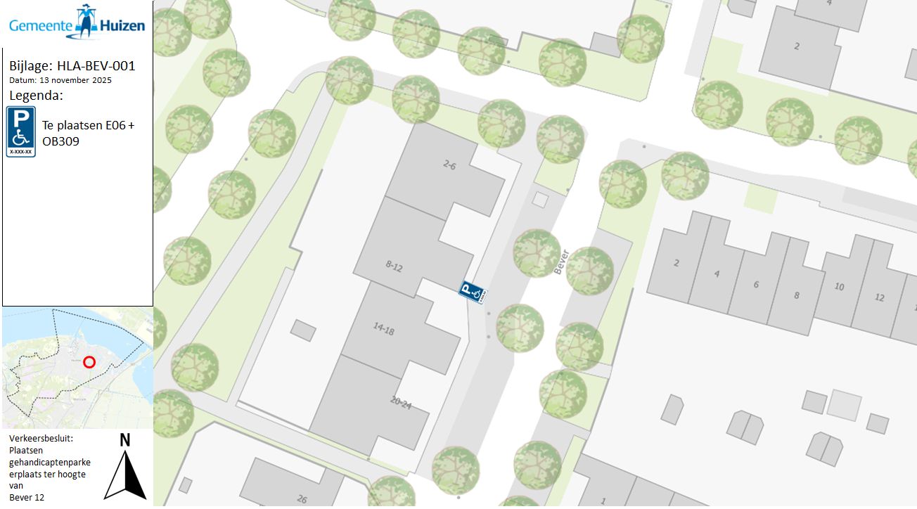 Verkeersbesluit plaatsen gehandicaptenparkeerplaats op kenteken Bever 12 te Huizen