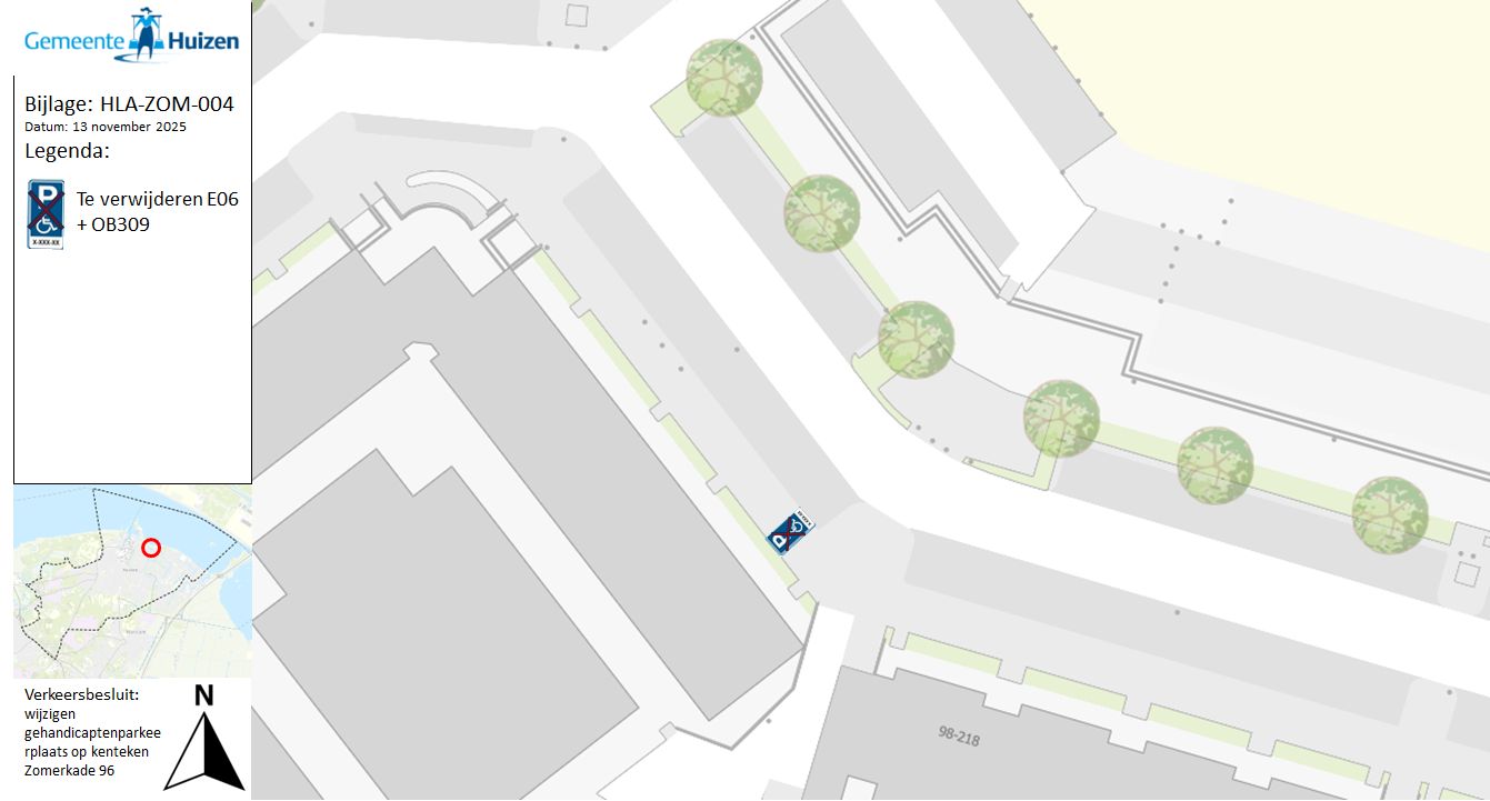 Verkeersbesluit gehandicaptenparkeerplaats verwijderen Zomerkade 96 te Huizen