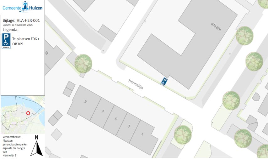 Verkeersbesluit plaatsen gehandicaptenparkeerplaats op kenteken Hermelijn 3 te Huizen