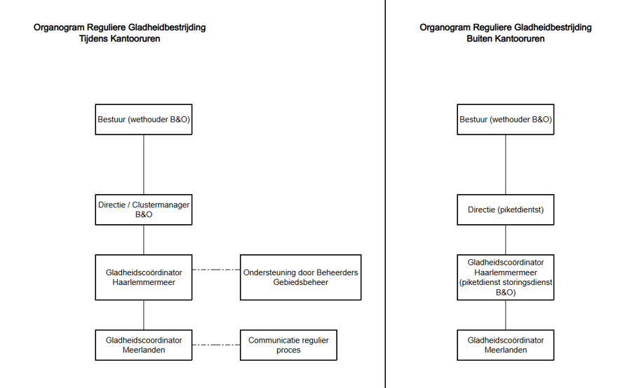 De organisatiestructuur gedurende de gladheids-bestrijding wordt hieronder weergegeven. Tevens is in bijlage 1 ter verduidelijking een organogram bijgevoegd.