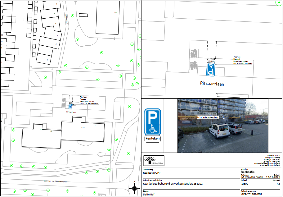 Verkeersbesluit voor het inrichten van een individuele gehandicaptenparkeerplaats op kenteken ten behoeve van een bewoner aan Ritsaartlaan te Geldrop