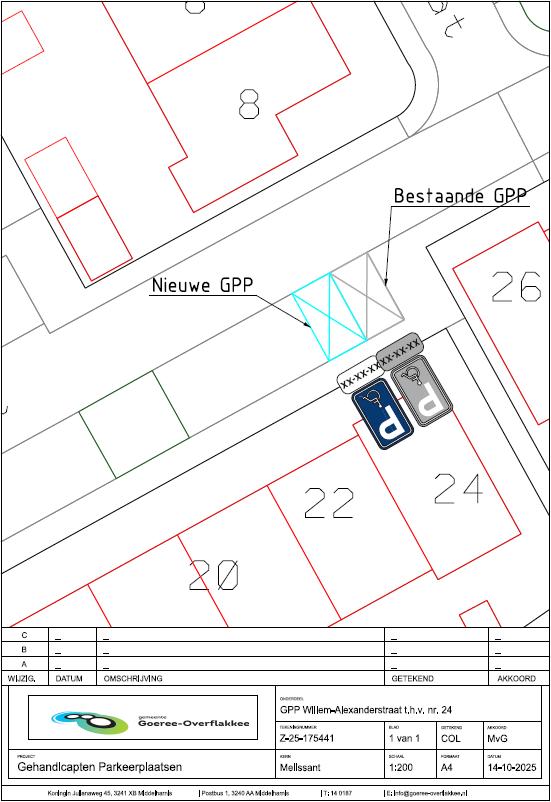 tot het aanwijzen van een gehandicaptenparkeerplaats op kenteken in de Willem-Alexanderstraat, in de haakse parkeervakken nabij de woning met huisnummer 24 te Melissant, door het plaatsen van verkeersbord E06 met onderbord OB309 met daarop het kenteken van de aanvrager conform model van bijlage I van het Reglement Verkeersregels en Verkeerstekens 1990;