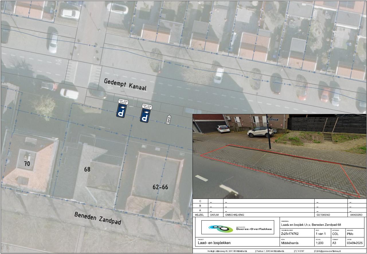 tot het aanwijzen van een laad- en losplaats van maandag tot en met zaterdag van 09.30u tot 13.30u op de twee parkeerplaatsen achter de panden aan het Beneden Zandpad met huisnummer 68 te Middelharnis door het plaatsen van verkeersbord E07 met onderbord OB206 met daarop de tekst “ma t/m za, 09.30 – 13.30” conform model van bijlage I van het Reglement Verkeersregels en Verkeerstekens 1990;