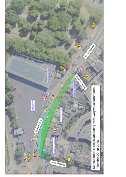 dat deze maatregelen bestaan uit het tijdelijk afsluiten van het deel van Kelfkensbos tussen de in- en uitgang van de onder het plein gelegen parkeergarage en het kruispunt Hertogstraat-Kelfkensbos;