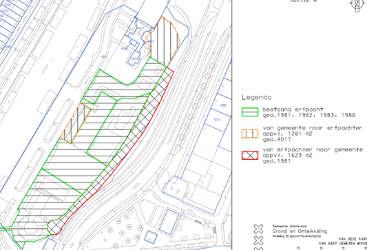 De gemeente Amsterdam is voornemens voormeld perceel grond in erfpacht uit te geven ten behoeve van de uitbreiding van een bestaand erfpachtrecht.