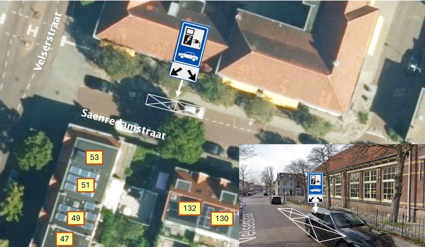 Verkeersbesluit gereserveerde parkeerplaatsen voor opladen elektrische voertuigen Saenredamstraat ter hoogte van de Velserstraat no.55 te Haarlem