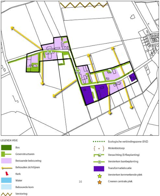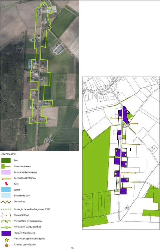De ligging van de bebouwingsconcentraties is op de bijgevoegde afbeelding aangegeven. Per bebouwingsconcentratie is een analyse (ruimtelijk en functioneel) en een streefbeeld (visie) met een afbeelding aangegeven. Het streefbeeld kan benut worden bij de beoordeling van individuele verzoeken in het licht van de verbetering van de ruimtelijke (lees: stedenbouwkundige en landschappelijke) kwaliteit.