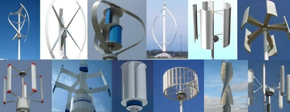 Turbines van het type VAT kunnen, afhankelijk van de vorm van de wieken, verdeeld worden in het Savonius‐type (“weerstandsmolen” met een dicht rotorblad) en het Darrieus‐type (met een open rotorblad, maakt gebruik van “lift” kracht).