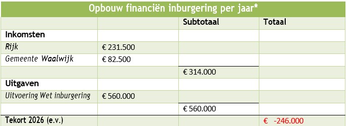 Bij gelijkblijvend beleid stijgt het tekort naar € 380.000 voor Waalwijk per jaar. Met de maatregelen die we in dit beleidsplan nemen verhogen we de kwaliteit van ons beleid, daarmee zorgen we voor een betere integratie en toekomst van onze statushouders in Waalwijk.