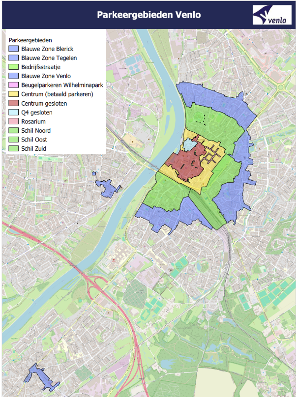 De navolgende regels zijn alleen van toepassing op de blauwe zones van Blerick, Tegelen en Venlo, zoals deze in bijlage 3 Parkeergebieden 2025 zijn weergegeven.