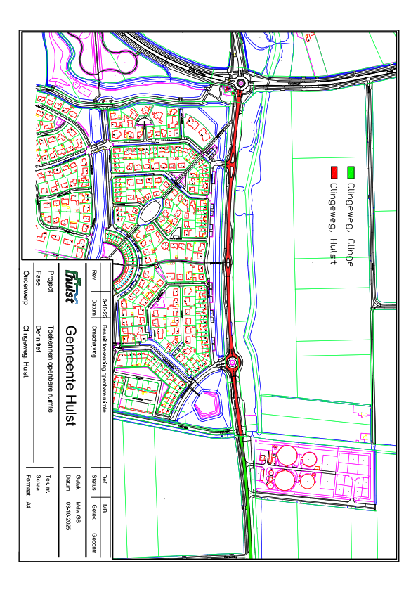De naam Clingeweg te Hulst toe te kennen aan de openbare ruimte gelegen tussen de van der Maelstedeweg te Hulst en de Clingeweg in Clinge.
