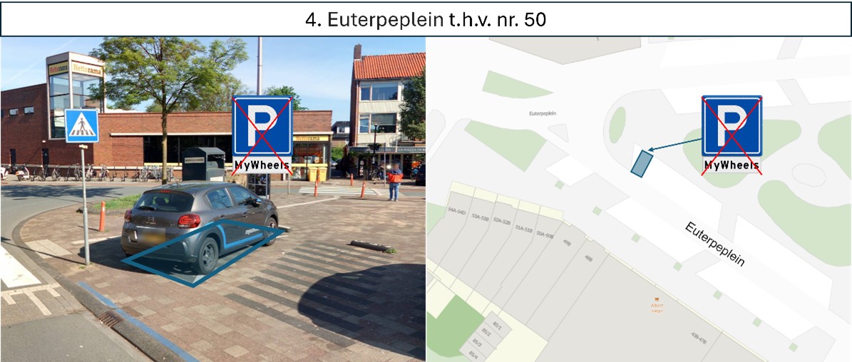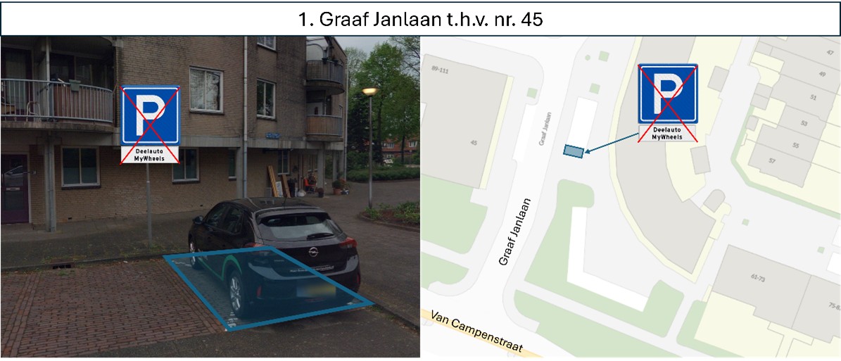 Situatieschets op te heffen parkeerplaatsen voor deelauto’s
