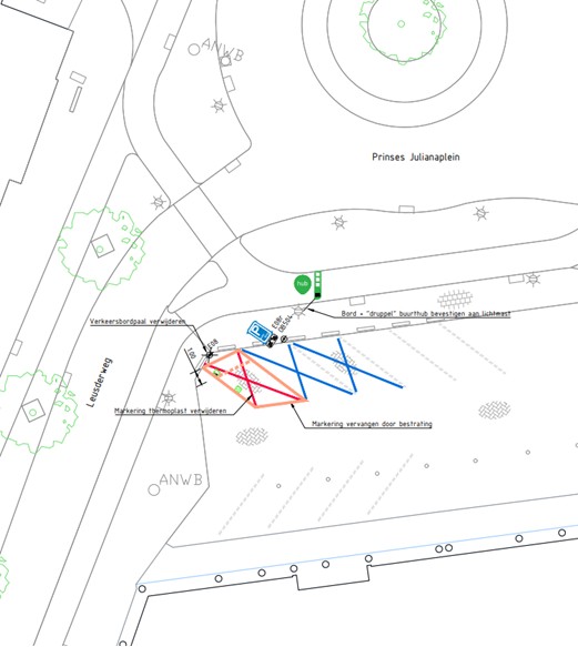- Maatregelen op of aan de weg tot een wijziging van de inrichting van de weg of het aanbrengen of verwijderen van voorzieningen ter regeling van het verkeer, indien de maatregelen leiden tot een beperking of uitbreiding van het aantal categorieën weggebruikers dat van een weg of weggedeelte gebruik kan maken.