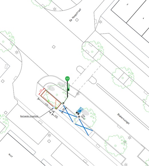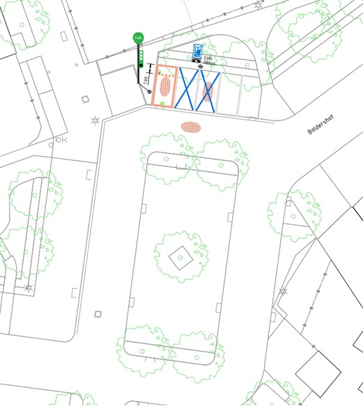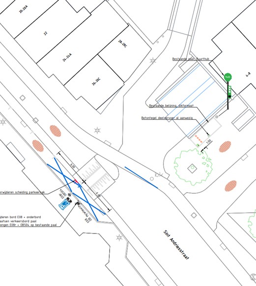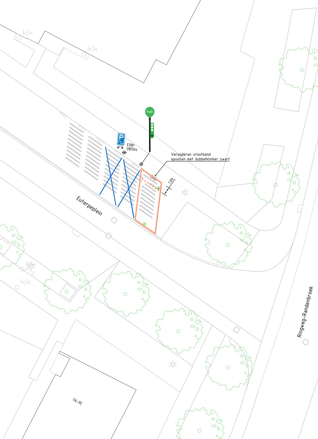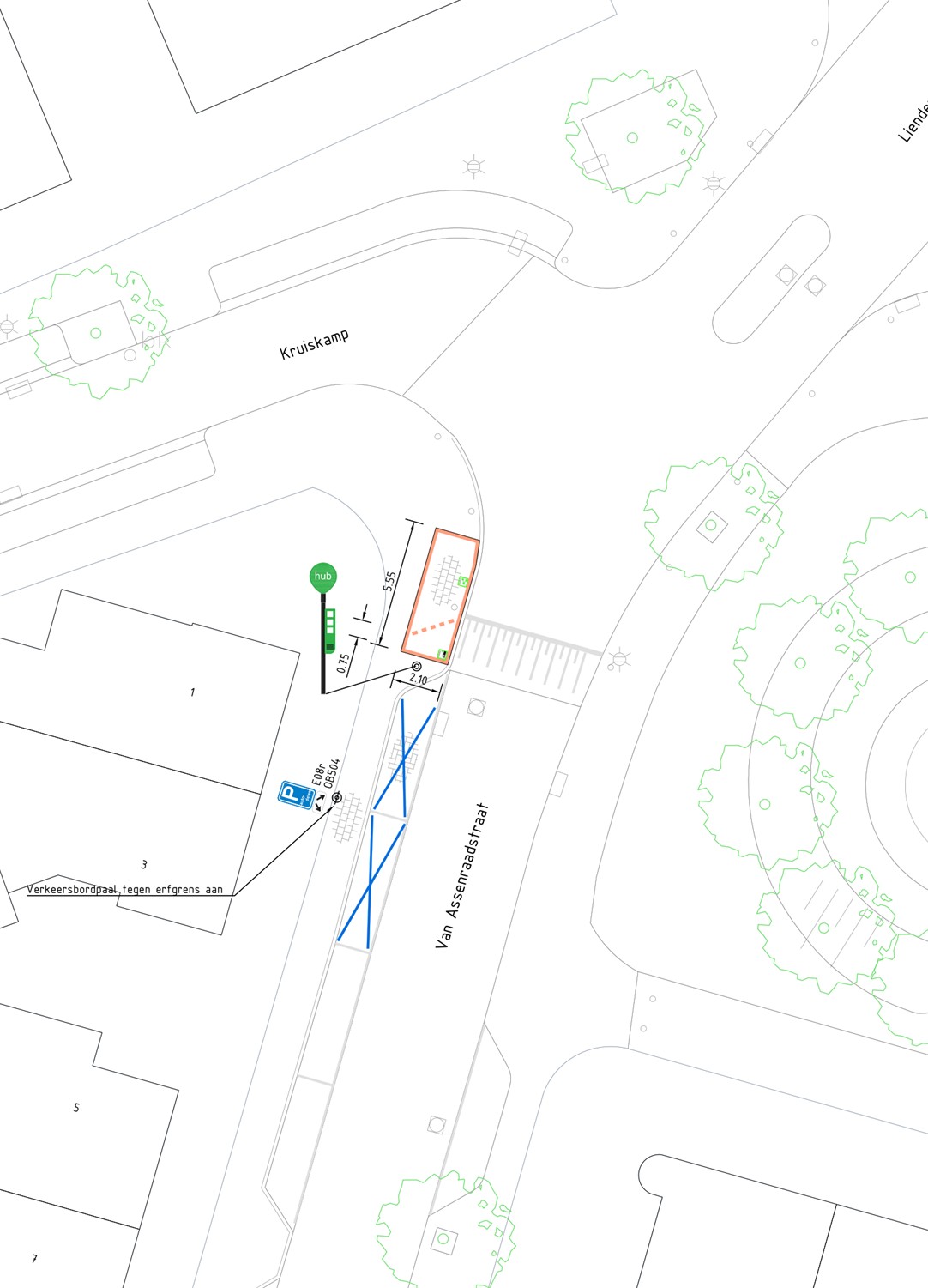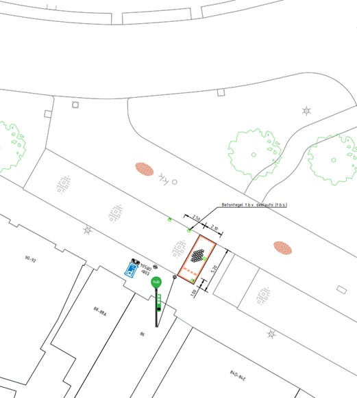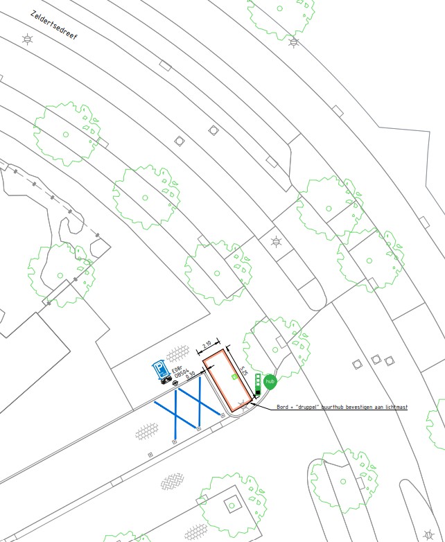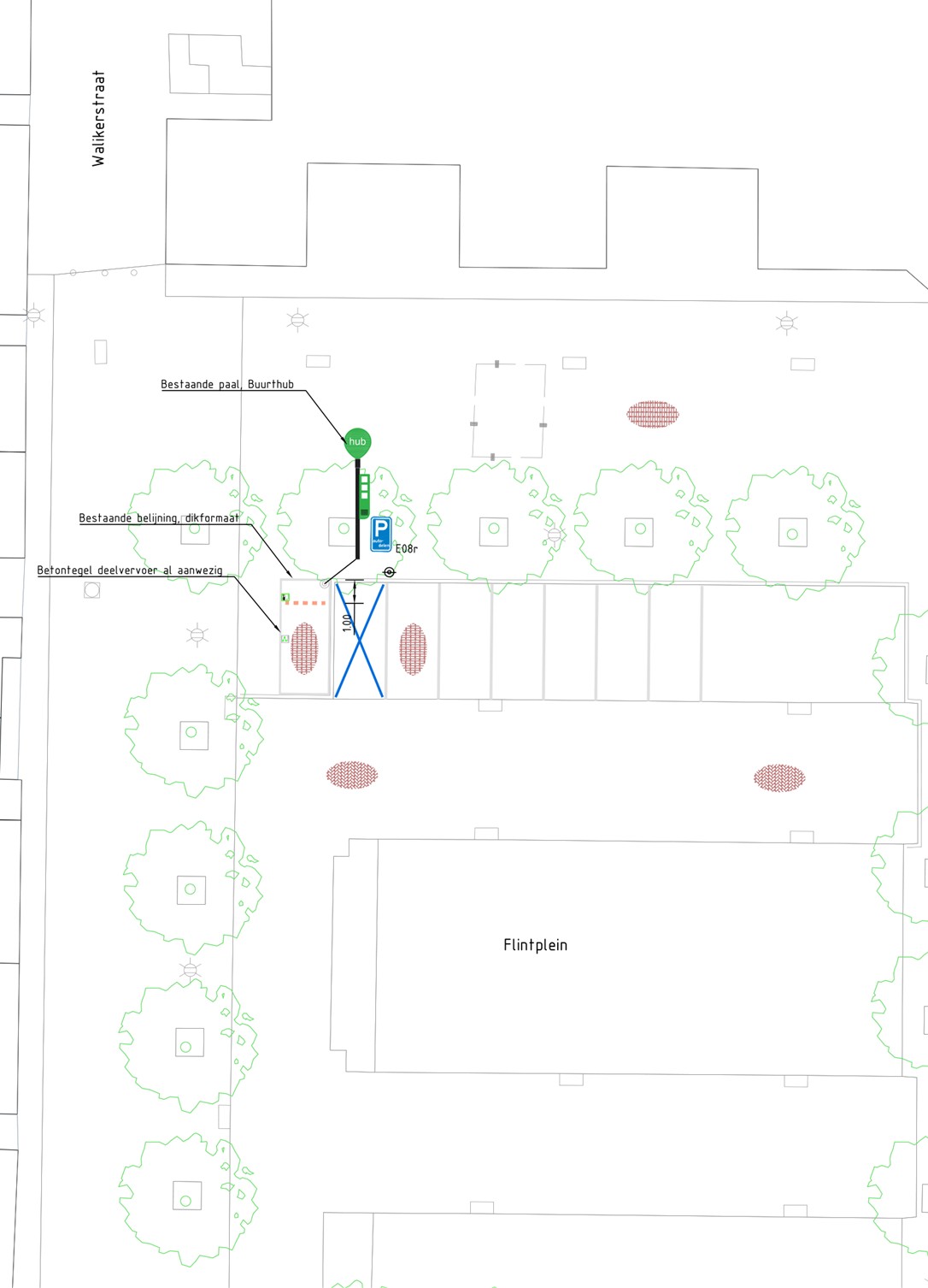 Situatieschets in te stellen parkeerplaatsen voor deelauto’s
